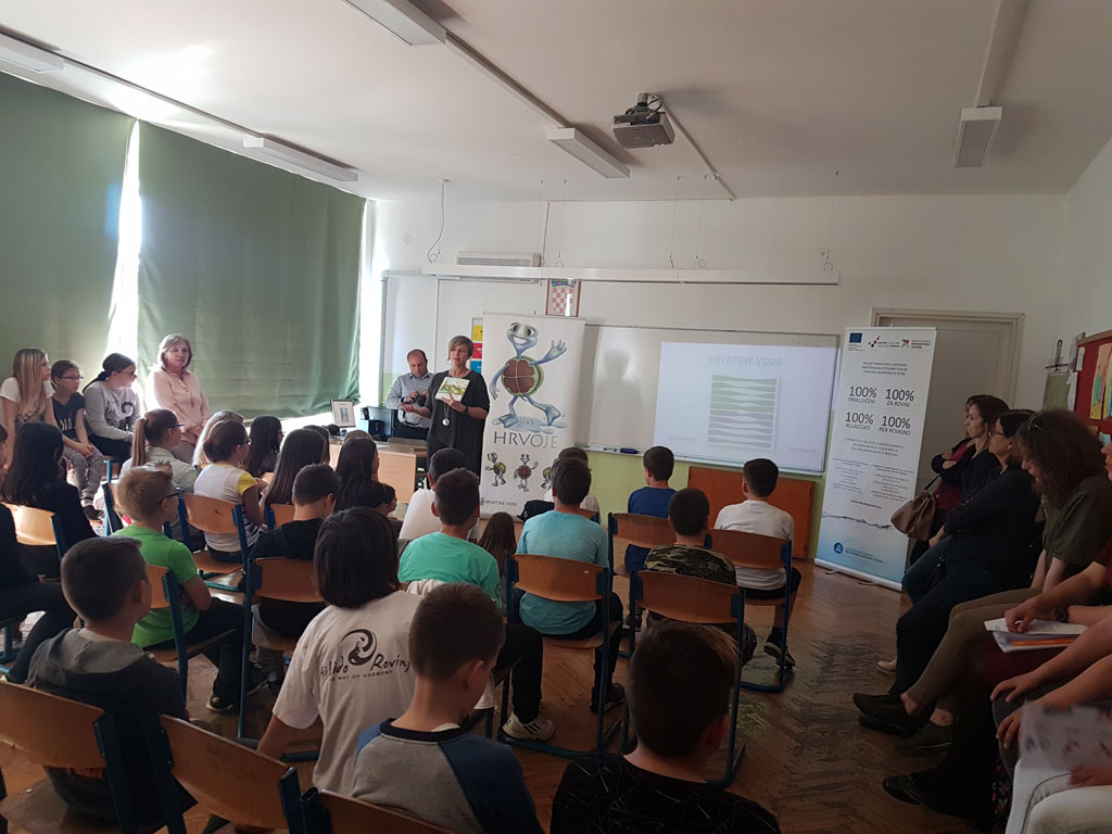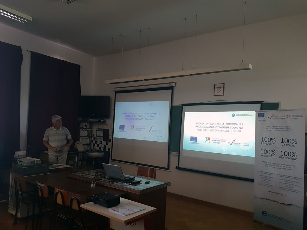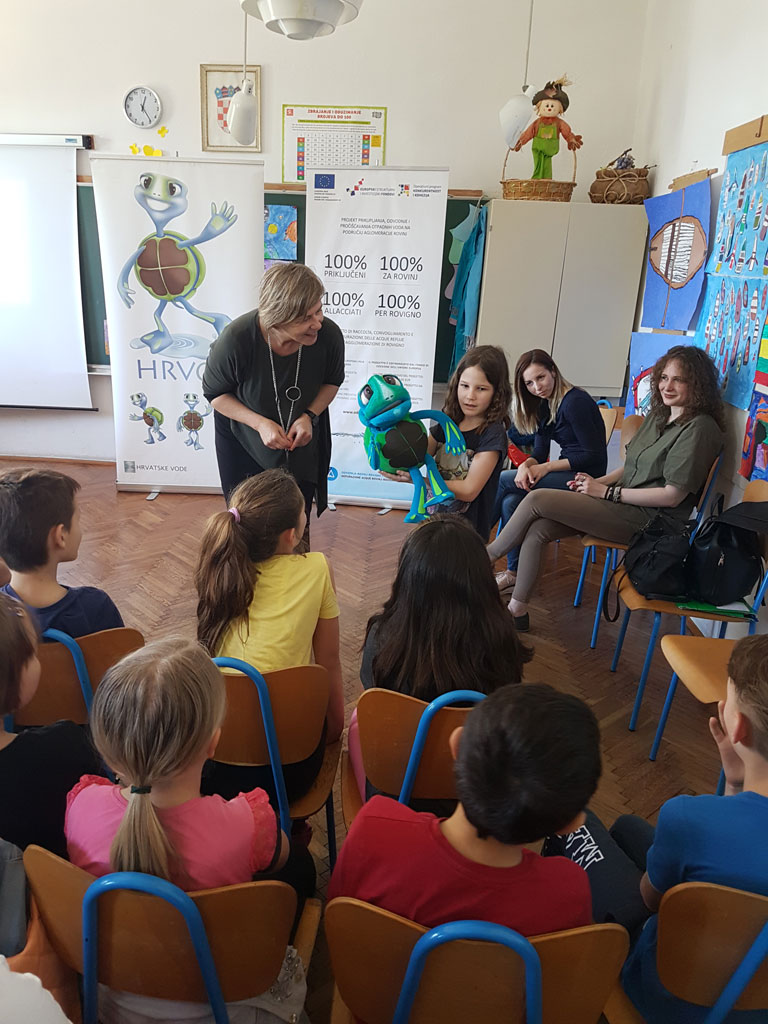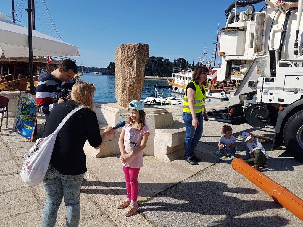 In occasione della Giornata della Terra, il 22 aprile 2018, sono stati organizzati numerosi eventi in tutto il mondo al fine di farci ricordare che dobbiamo salvaguardare l’ambiente e proteggere le fonti naturali e richiamare l’attenzione sulla vita a rischio dell’inquinamento globale. La Depurazione acque Rovinj-Rovigno s.r.l. si è unita alla commemorazione della Giornata della Terra con una serie di eventi educativo-promozionali per avvertire quanto sia importante l’acqua, risorsa naturale senza la quale non è possibile la vita sulla Terra. Ai bambini dell’età prescolare e scolare sono stati introdotti in modo semplice i concetti di smaltimento e depurazione delle acque reflue, mentre gli alunni delle scuole medie superiori hanno appreso le caratteristiche principali del Progetto di raccolta, convogliamento e depurazione nell’agglomerazione di Rovigno. Giovedì 19 aprile 2018 per i bambini dalla seconda alla quarta classe delle scuole elementari Vladimir Nazor e Juraj Dobrila sono stati organizzati tre laboratori interattivi della durata di 45 minuti dove in modo semplice e divertente, attraverso le avventure e le disavventure della tartaruga Hrvoje, hanno sviluppato la coscienza sull’importanza dell’acqua, sulla sua salvaguardia e protezione ed hanno appreso i concetti di base legati alla convogliamento, smaltimento e depurazione delle acque reflue. I laboratori, ai quali hanno partecipato in totale cca 130 alunni accompagnati dagli insegnati, sono stati organizzati in collaborazione con la Depurazione acque e l’Ufficio pubbliche relazioni dell’ente Hrvatske vode. Dopo la presentazione ad immagini e la conversazione, i bambini e le scuole hanno ricevuto in dono il libro illustrato dell’ente Hrvatske vode sul tema di protezione e depurazione delle acque. Venerdì 20 aprile 2018, dalle ore 9:15 alle 11.30 sati, la Piazza Matteotti a Rovigno è stata travolta dai bambini del Giardino d’infanzia “Neven” e del Giardino d’infanzia italiano “Naridola”. Circa trecento piccoli visitatori sono venuti a gruppi in Piazza, accompagnati dalle educatrici, seguendo l’ordine prestabilito. In Piazza li hanno accolti i rappresentanti della Depurazione acque Rovigno assieme all’attrezzatura e ai veicoli esposti per la pulizia e la manutenzione della fognatura, il cui acquisto è stato cofinanziato con i fondi dell’UE. I bambini, cantando, gridando e strepitando dall’emozione e dalla curiosità, entravano nei veicoli, si interessavano dell’attrezzatura, manovravano un robot con camera e guardavano l’interno delle tubature sullo schermo. Con sé hanno portato dei disegni che hanno fatto preparandosi per l’evento e che le brave educatrici hanno appeso con le mollette sulla fune che avevano teso a posta in Piazza. Alla bancarella informativo-promozionale del Progetto i bambini avevano a disposizione libri da colorare ed esercizi sul tema dell’acqua, dello smaltimento e della depurazione, e le persone che li accompagnavano potevano usufruire materiali promozionali del Progetto. Dopo la visita dei bambini, i cittadini hanno potuto guardare fino alle 12:00 le macchine e i veicoli esposti. Lo stesso giorno, dalle ore 12:30 dalle 13:15, nell’aula della scuola media superiore Zvane Črnja è stato tenuto un incontro introduttivo con gli alunni al fine di presentare il Progetto di depurazione acque di Rovigno nello spirito di commemorazione della Giornata della Terra. Accanto agli alunni della scuola ospitante hanno partecipato anche gli alunni della Scuola media superiore Italiana. Il prof. Željko Balog ha rivolto le parole di benvenuto, facendoci ricordare la responsabilità verso il pianeta Terra. Nella parte centrale del Programma la rappresentate della Depurazione acque Rovigno, Sanja Bokun, ha presentato il Progetto. Seguirono domande e risposte, perlopiù legate al modo di depurazione e alla costruzione dell’impianto. Verso la fine dell’incontro, il prof. Daniele Suman ha mostrato i risultati del progetto di ricerca degli organismi marini vicino al posto di scarico svolta alcuni anni fa. Ha partecipato uno quarantina di alunni delle medie superiori.